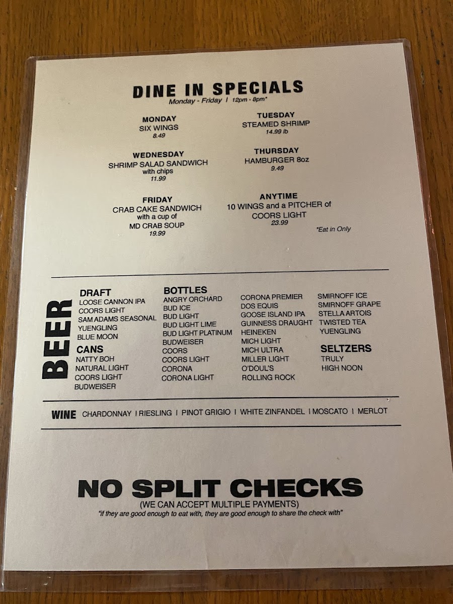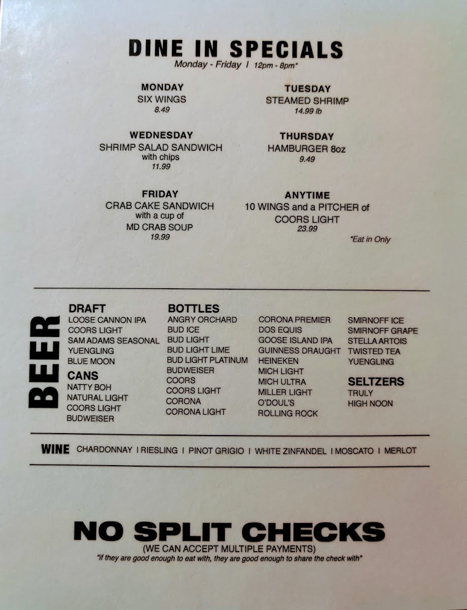 The approachable nature of the menu and its dishes invites guests to take their time, savor the seasoning, and enjoy the experience of dining on Maryland classics at a place that feels like a neighborhood gathering point.