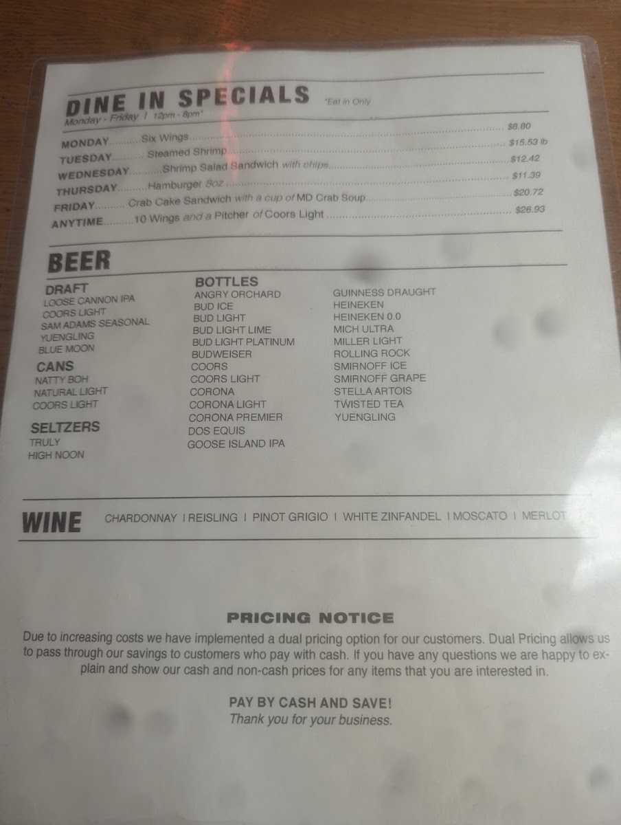 Guests often come here to dive into hearty meals featuring local staples like jumbo steamed crabs, cream of crab soup, and soft shell crab sandwiches. Whether it’s a casual lunch or a cozy dinner, these dishes pair naturally with cold beers or refreshing soft drinks, complementing the venue’s informal and friendly vibe.